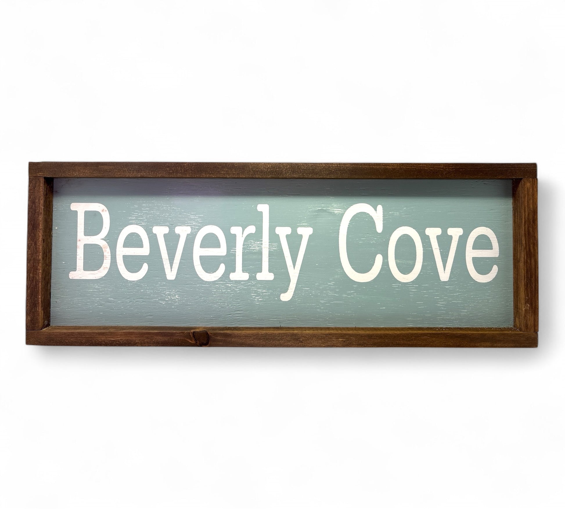 Celebrate the Beverly Cove neighborhood with a handcrafted Odd Cod wooden sign. Each piece begins with hand-painted lettering, then is carefully sanded and distressed to capture the timeworn character of the coast. We finish with a protective hand-applied wax and set the artwork in a hand-stained, routed wooden frame for warmth and durability,