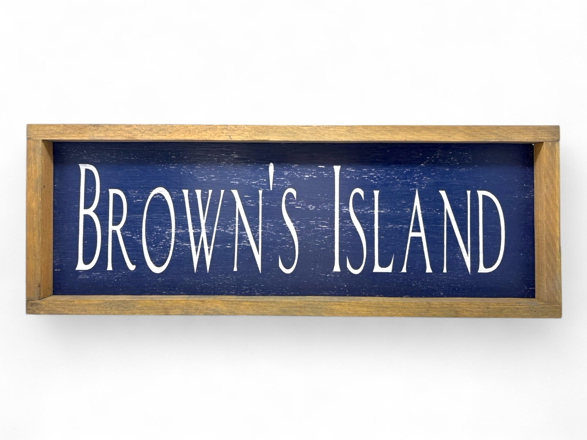 Celebrate Brown's Island with a handcrafted Odd Cod wooden sign. Each piece begins with hand-painted lettering, then is carefully sanded and distressed to capture the timeworn character of the coast. We finish with a protective hand-applied wax and set the artwork in a hand-stained, routed wooden frame for warmth and durability,