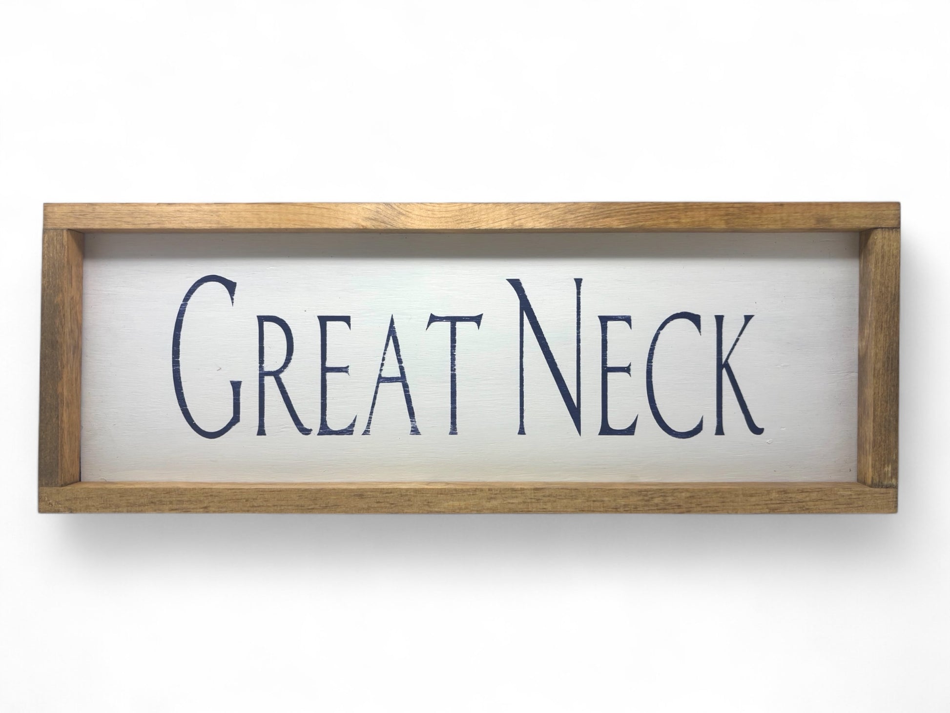 Celebrate the Great Neck neighborhood with a handcrafted Odd Cod wooden sign. Each piece begins with hand-painted lettering, then is carefully sanded and distressed to capture the timeworn character of the coast. We finish with a protective hand-applied wax and set the artwork in a hand-stained, routed wooden frame for warmth and durability,