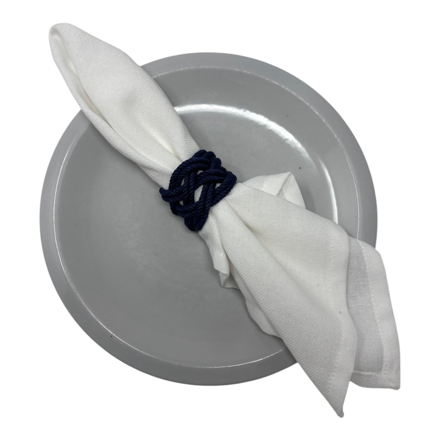 Elevate your table with a touch of coastal craftsmanship. Each napkin ring is hand-tied using natural cotton rope, forming a classic sailor’s knot that brings both texture and timeless nautical charm to your dining setting.