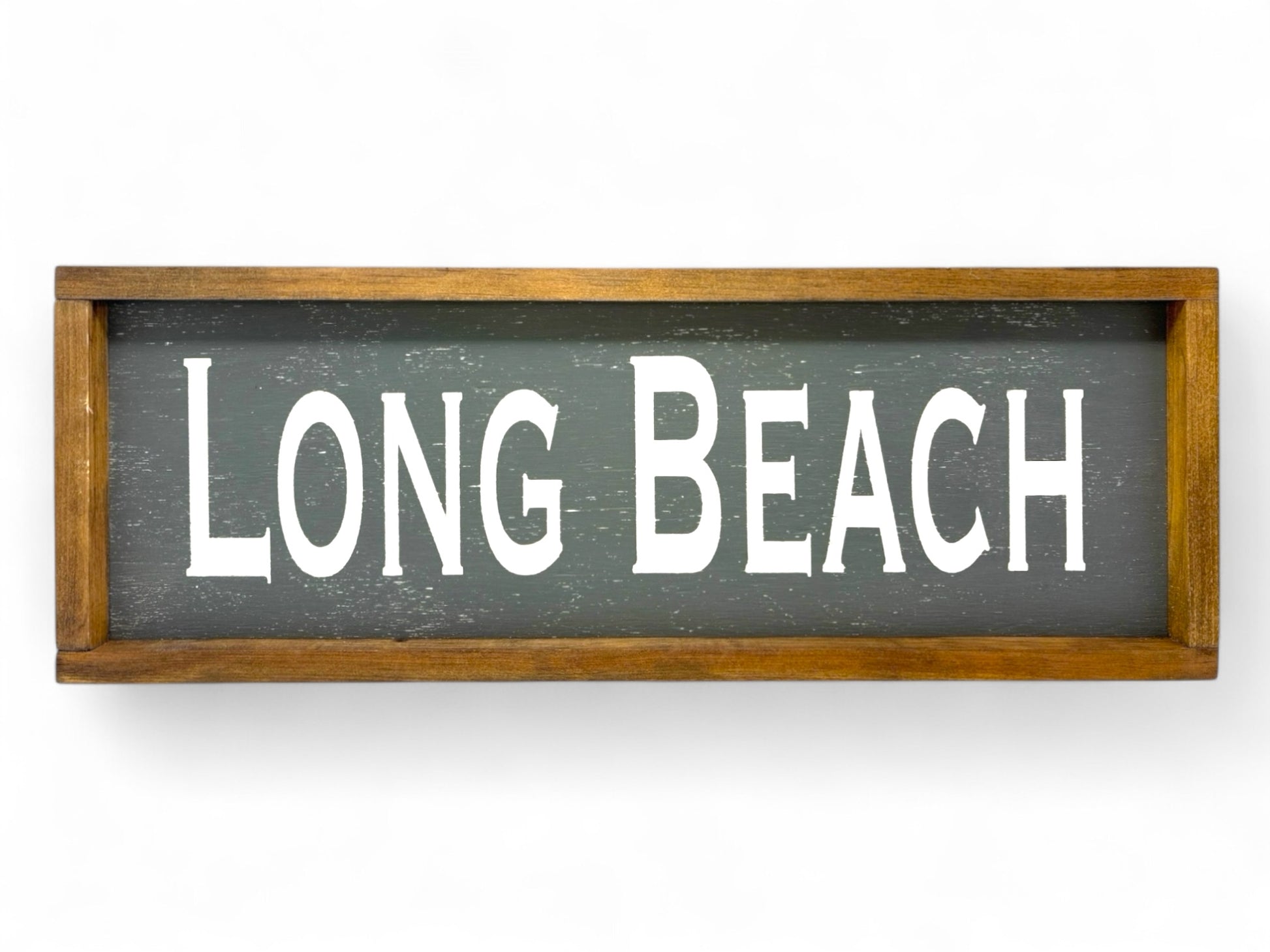 Celebrate Long Beach with a handcrafted Odd Cod wooden sign. Each piece begins with hand-painted lettering, then is carefully sanded and distressed to capture the timeworn character of the coast. We finish with a protective hand-applied wax and set the artwork in a hand-stained, routed wooden frame for warmth and durability,