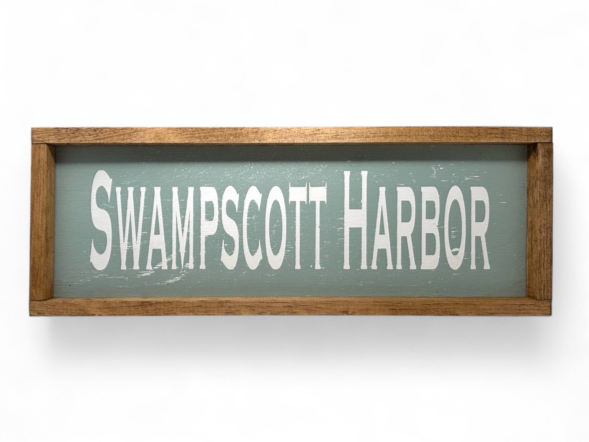 Celebrate Swampscott Harbor with a handcrafted Odd Cod wooden sign. Each piece begins with hand-painted lettering, then is carefully sanded and distressed to capture the timeworn character of the coast. We finish with a protective hand-applied wax and set the artwork in a hand-stained, routed wooden frame for warmth and durability,