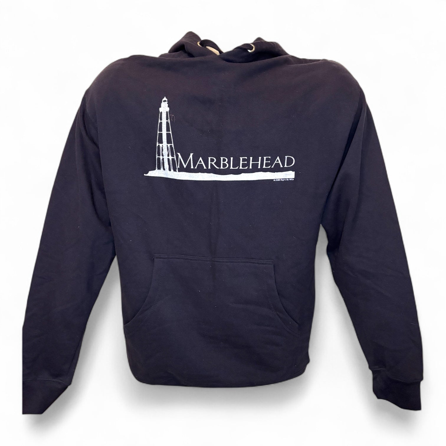 Layer up with coastal history in the Marblehead Light Hooded Sweatshirt, featuring original Odd Cod artwork of Marblehead’s iconic lighthouse. Established in 1835 and rebuilt in 1896 as a rare cast-iron skeletal tower, Marblehead Light is the only structure of its kind in New England. Standing tall above Chandler Hovey Park, it has guided sailors home for more than a century.