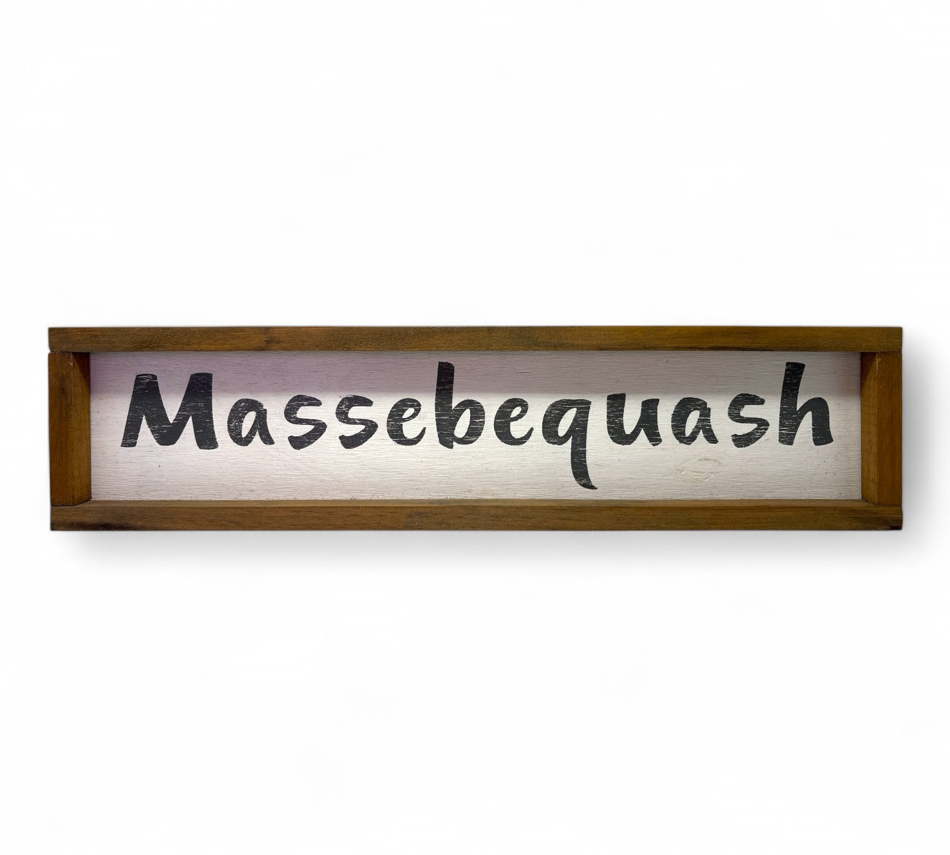Celebrate Marblehead in its earliest name, Massebequash—the original Naumkeag word for the river and shoreline that became this storied harbor town. Each sign is hand-painted, sanded, waxed, and framed by hand in our North Shore workshop, preserving both coastal craft and the meaning of place.