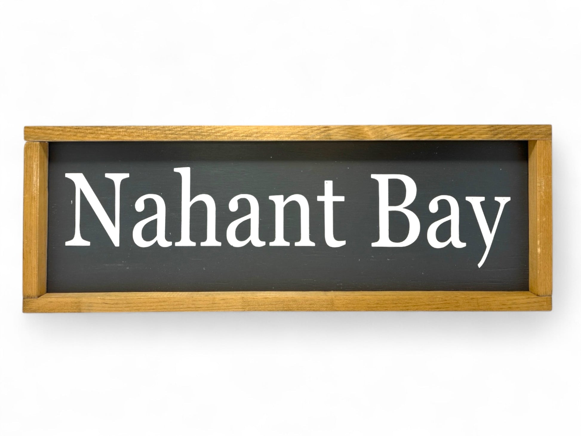 Celebrate Nahant Bay with a handcrafted Odd Cod wooden sign. Each piece begins with hand-painted lettering, then is carefully sanded and distressed to capture the timeworn character of the coast. We finish with a protective hand-applied wax and set the artwork in a hand-stained, routed wooden frame for warmth and durability,