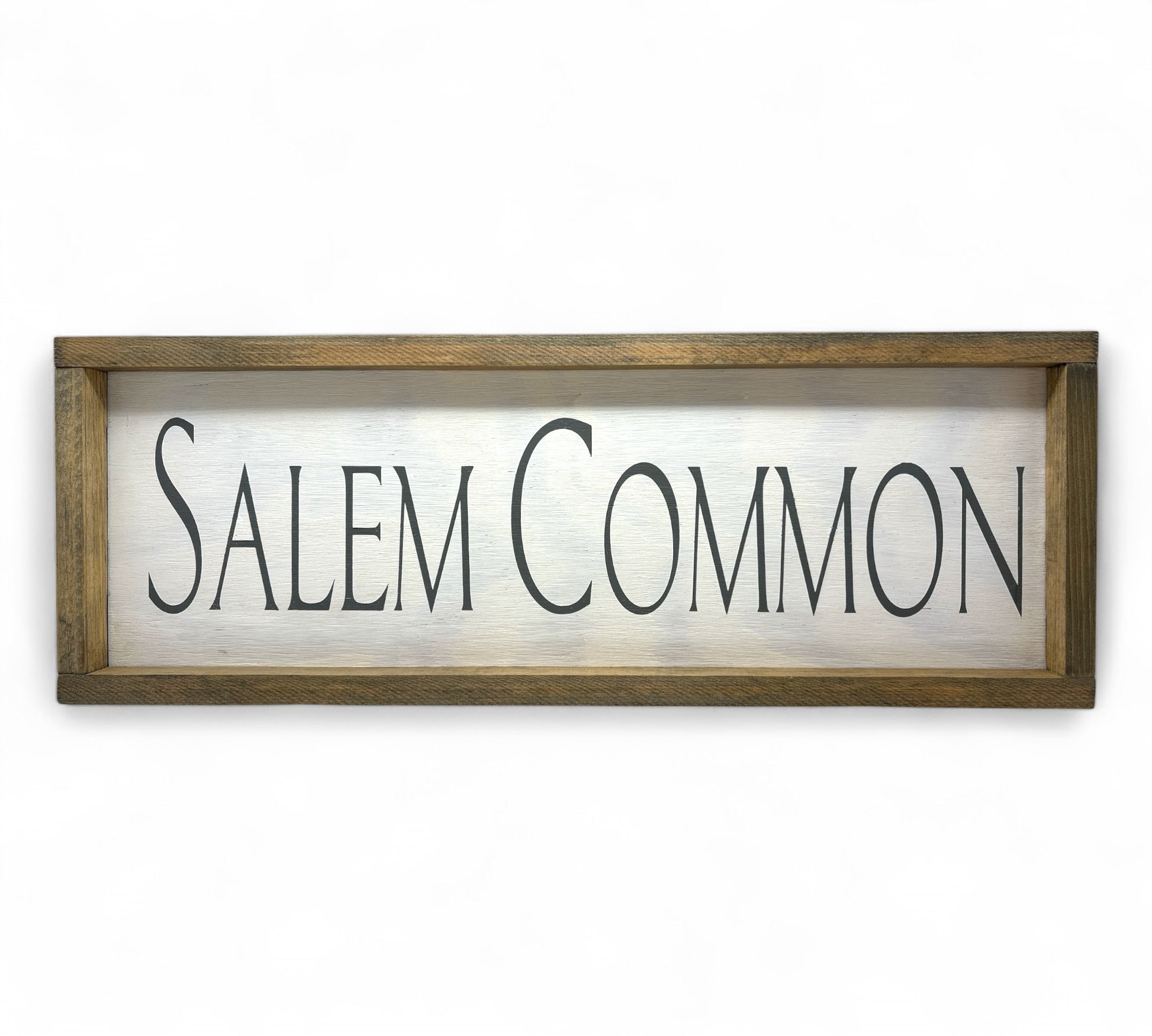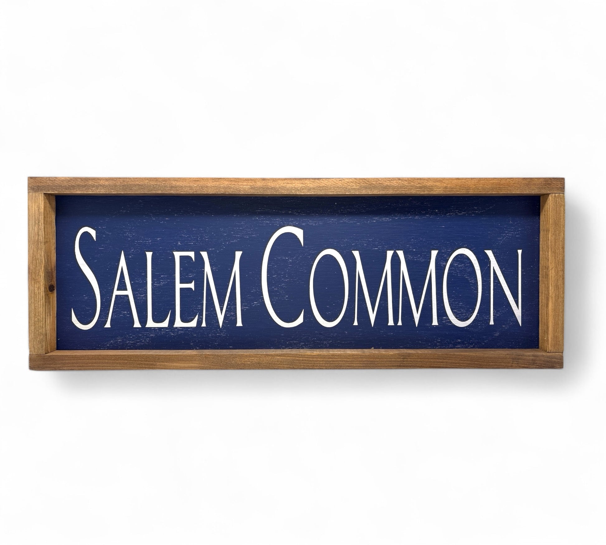 Celebrate historic Salem Common with a handcrafted Odd Cod wooden sign. Each piece begins with hand-painted lettering, then is carefully sanded and distressed to capture the timeworn character of the coast. We finish with a protective hand-applied wax and set the artwork in a hand-stained, routed wooden frame for warmth and durability,