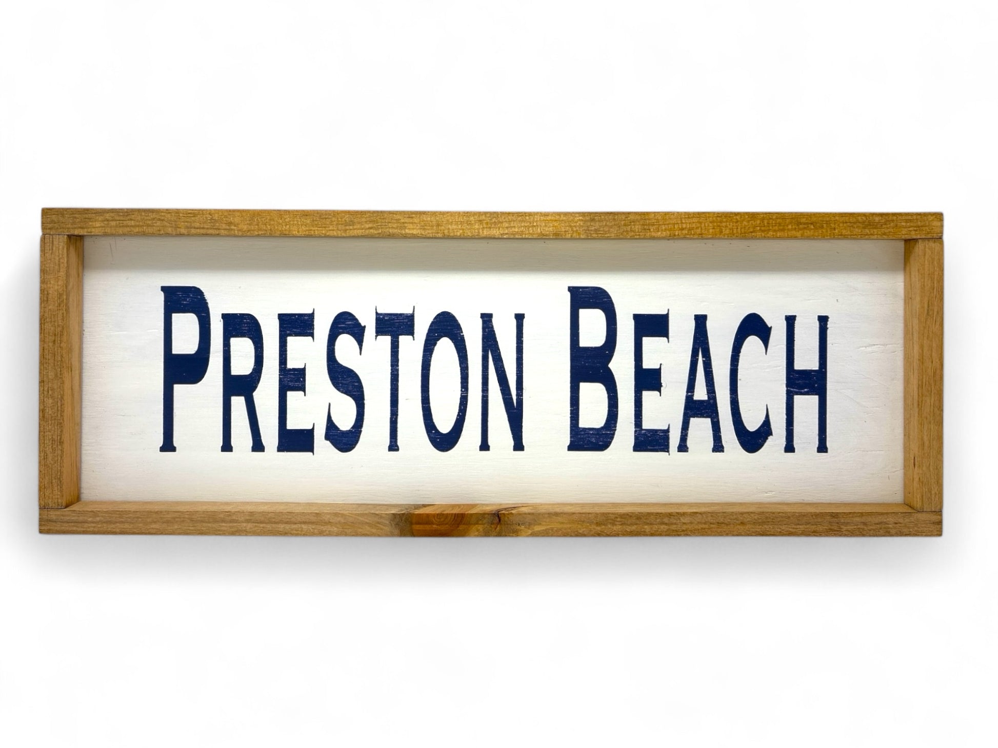 Celebrate Preston Beach with a handcrafted Odd Cod wooden sign. Each piece begins with hand-painted lettering, then is carefully sanded and distressed to capture the timeworn character of the coast. We finish with a protective hand-applied wax and set the artwork in a hand-stained, routed wooden frame for warmth and durability,
