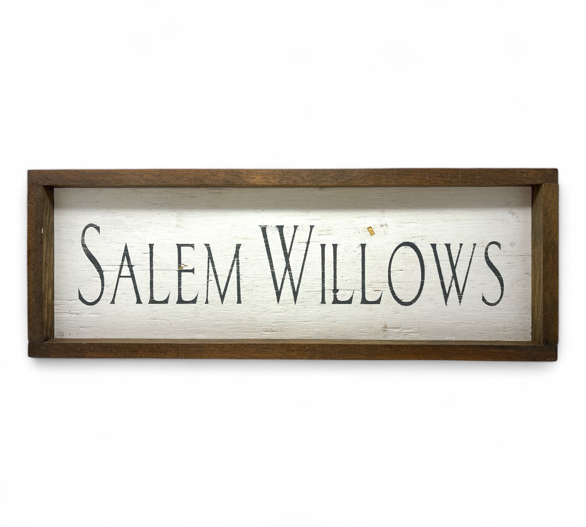 Celebrate historic Salem Willows with a handcrafted Odd Cod wooden sign. Each piece begins with hand-painted lettering, then is carefully sanded and distressed to capture the timeworn character of the coast. We finish with a protective hand-applied wax and set the artwork in a hand-stained, routed wooden frame for warmth and durability,