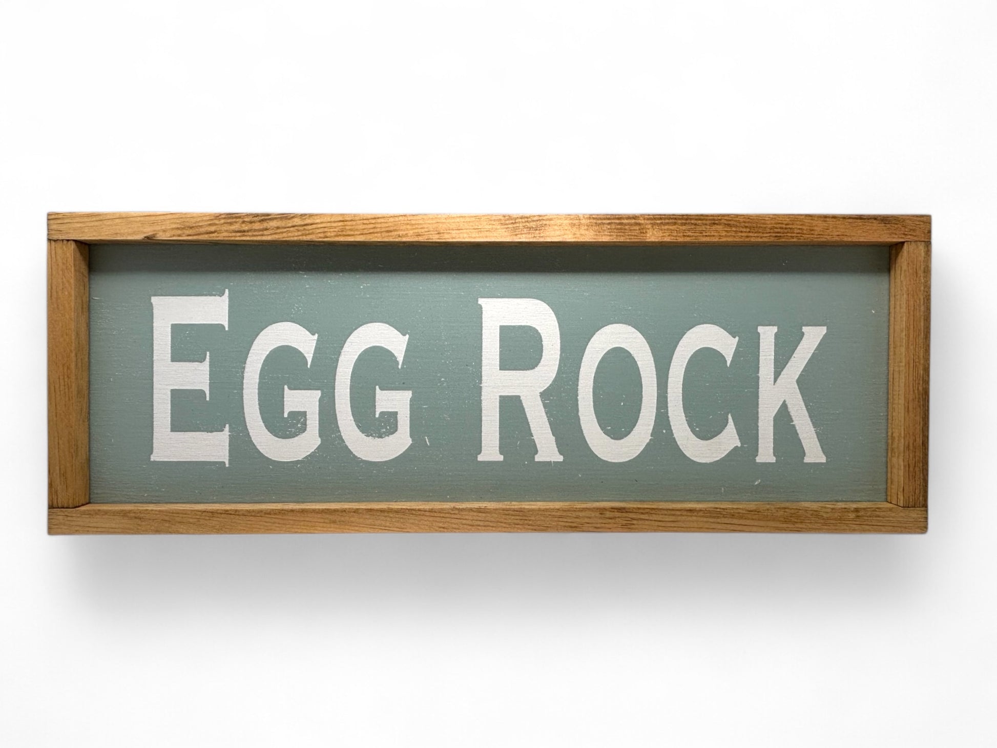 Celebrate Egg Rock with a handcrafted Odd Cod wooden sign. Each piece begins with hand-painted lettering, then is carefully sanded and distressed to capture the timeworn character of the coast. We finish with a protective hand-applied wax and set the artwork in a hand-stained, routed wooden frame for warmth and durability,